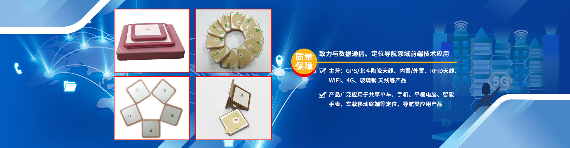 主營GPS/北斗陶瓷天線、內置/外置天線、手機/FPC天線、WiFi/RFID天線、4G玻璃鋼天線等產品。產品廣泛應用于共享單車、手機、平板電腦、智能手表、電子狗、倉庫管理、物流配送、軍用物資管理、車輛管理、追蹤器、防盜器、車載移動端等。公司以新技術應用和技術創新為核心競爭力,定位于具有自主知識產權的通信設備、功能模塊的研發、制造和市場銷售。產品遠銷韓國,日本,美國,意大利,加拿大,英國,澳洲等國。以質量為擔保,生產發貨周期短,可批量定制,也可量大從優,價格優惠是采購商/經銷商的首選。公司秉承“誠信、平等、共贏、尊重”的經營理念,堅持“創新、高效、品質、服務”的企業宗旨、“服務只有起點、滿意沒有終點”的企業精神歡迎來電洽談業務